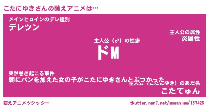 | 男性向けラノベタイトル風あだ名 | 『こたにゆきの憂鬱』 |