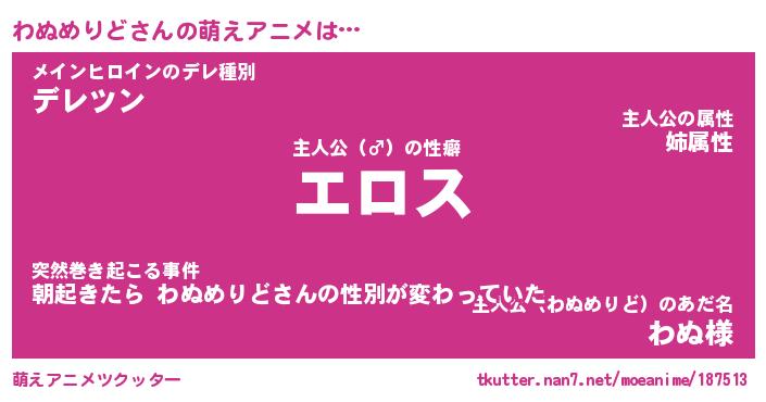 | 男性向けラノベタイトル風あだ名 | 『ワヌメリドアートオンライン』 |