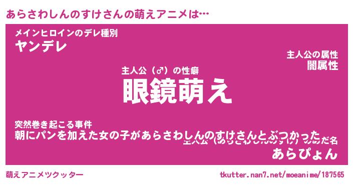 | 男性向けラノベタイトル風あだ名 | 『あらさわしんのすけの憂鬱』 |