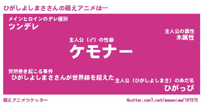 | 女子向けラノベタイトル風あだ名 | 『誰かこのひがしよしまさを説明してください! ~契約から始まるウェディング~』 |