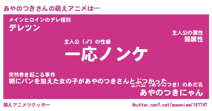| ツイッター | あやのつきさんのツイッターID『dendenmushi_star』 |