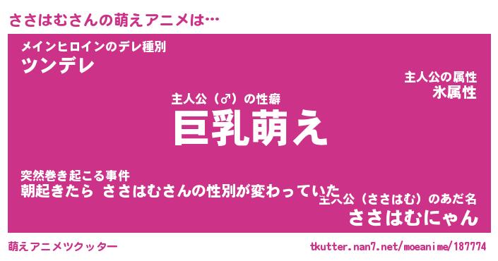| 男性向けラノベタイトル風あだ名 | 『ささはむの憂鬱』 |