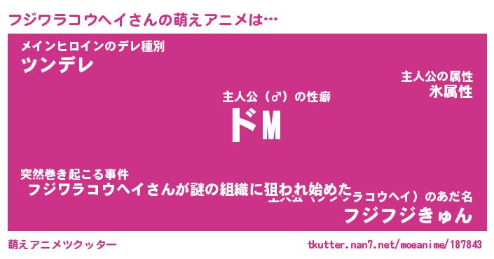 | 男性向けラノベタイトル風あだ名 | 『フジワラコウヘイの憂鬱』 |