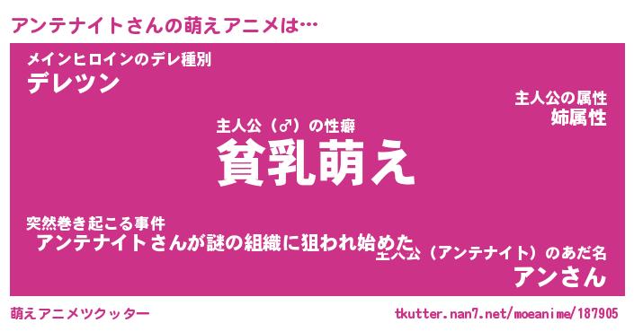 | 男性向けラノベタイトル風あだ名 | 『アンテナイトの憂鬱』 |