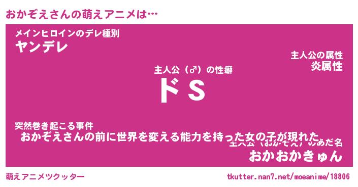 | 2回繰り返すあだ名 | 『おかおか』『おおかか』『ぬれぬれ』 |