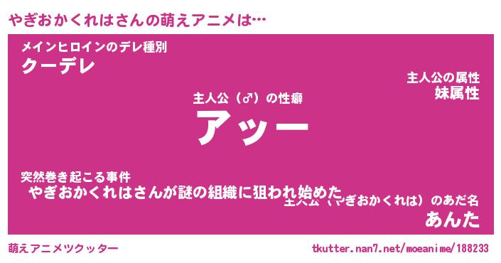 | 伝説のあだ名 | 『封印されしスナイパーやぎおかくれは』 |