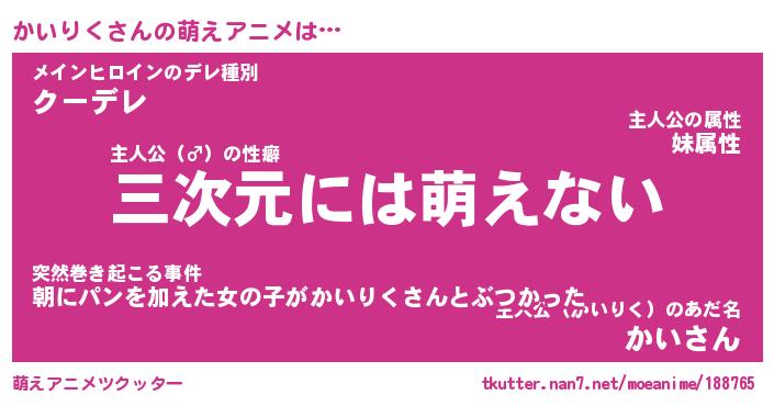 | ヘコむあだ名 | 『かいもー』『酢こんぶ』『かいっ子』 |