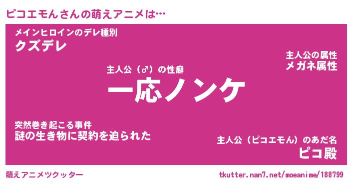 | 女子向けラノベタイトル風あだ名 | 『誰かこのピコエモんを説明してください! ~契約から始まるウェディング~』 |