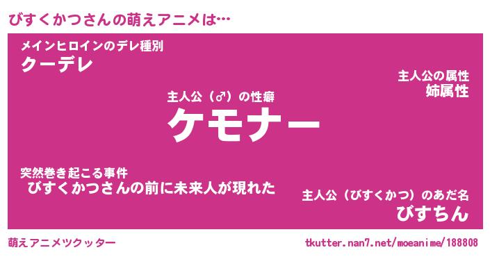 | ヘコむあだ名 | 『びすにゅー』『レバニラ』『びすお』 |
