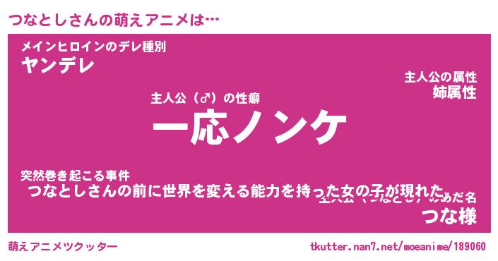 | 男性向けラノベタイトル風あだ名 | 『ツナトシアートオンライン』 |