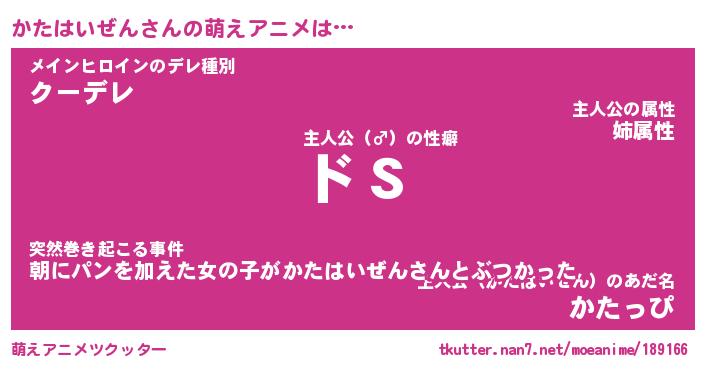 | 男性向けラノベタイトル風あだ名 | 『かたはいぜんの憂鬱』 |