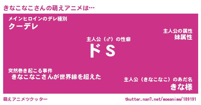 | ファンタジー風あだ名 | 『キナフェル』『エターナルキナコナコー』 |