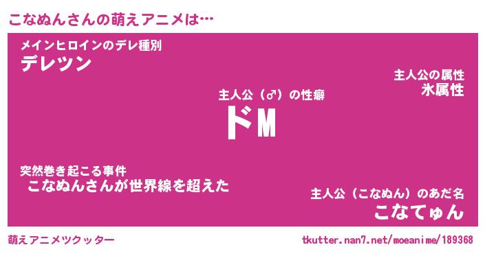 | 男性向けラノベタイトル風あだ名 | 『こなぬんの憂鬱』 |