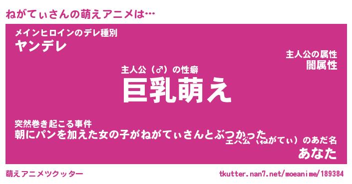 | 男性向けラノベタイトル風あだ名 | 『ねがてぃの憂鬱』 |
