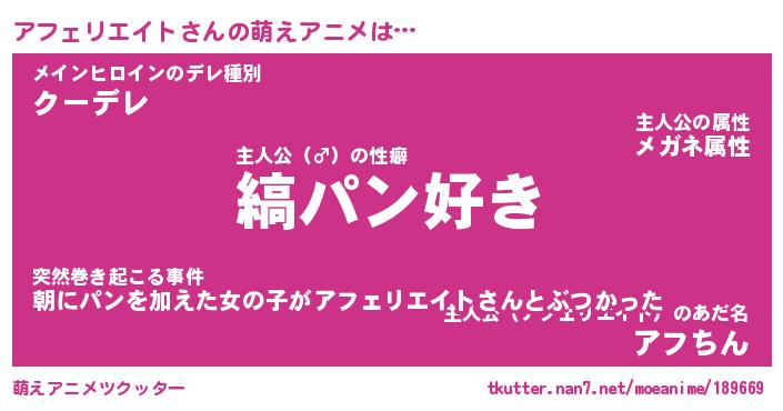 | 男性向けラノベタイトル風あだ名 | 『アフェリエイトの憂鬱』 |