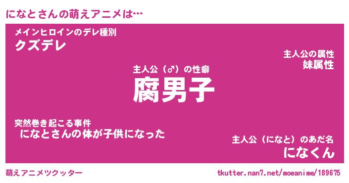 | ヘコむあだ名 | 『になもー』『酢こんぶ』『になっ子』 |