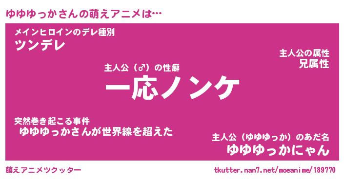 | ファンタジー風あだ名 | 『ユユフェル』『エターナルユユユッカー』 |