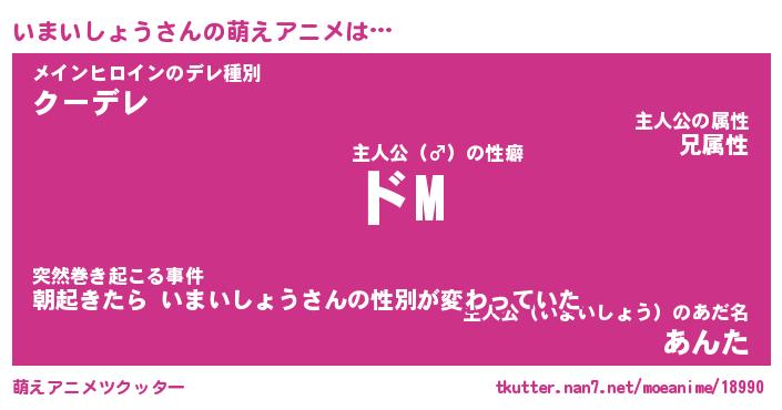 | 男性向けラノベタイトル風あだ名 | 『いまいしょうの憂鬱』 |