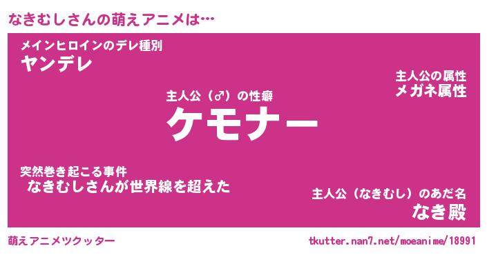 | 男性向けラノベタイトル風あだ名 | 『ナキムシアートオンライン』 |
