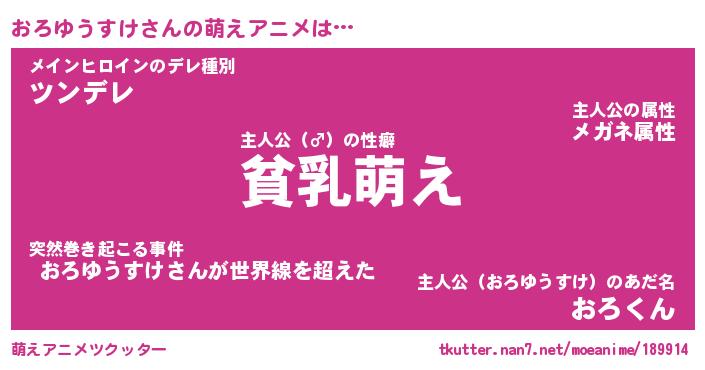 | 男性向けラノベタイトル風あだ名 | 『おろゆうすけの憂鬱』 |