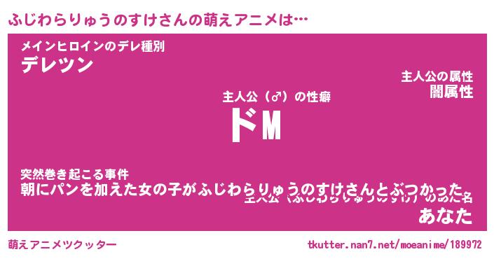 | 女子向けラノベタイトル風あだ名 | 『(仮)ふじわらりゅうのすけのやんごとなき事情』 |