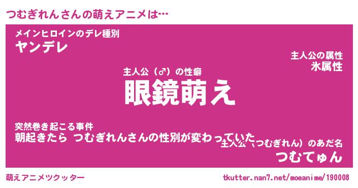 | 男性向けラノベタイトル風あだ名 | 『つむぎれんの憂鬱』 |