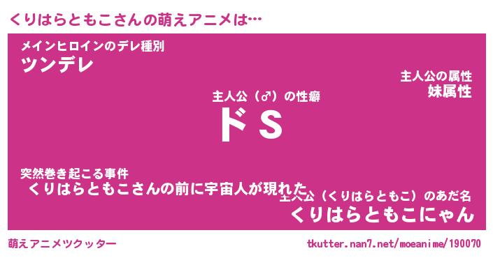 | 男性向けラノベタイトル風あだ名 | 『くりはらともこの憂鬱』 |