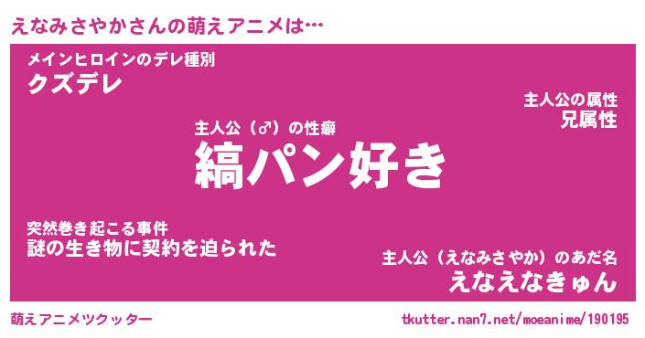 | 2回繰り返すあだ名 | 『えなえな』『ええなな』『ねちねち』 |