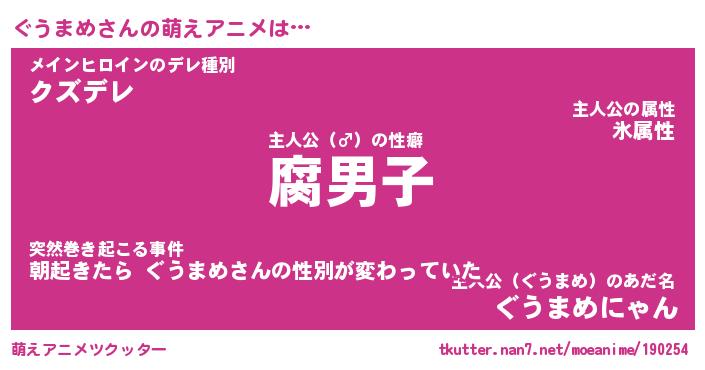 | 男性向けラノベタイトル風あだ名 | 『グウマメアートオンライン』 |