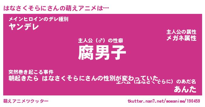 | 男性向けラノベタイトル風あだ名 | 『ハナサクソラニアートオンライン』 |