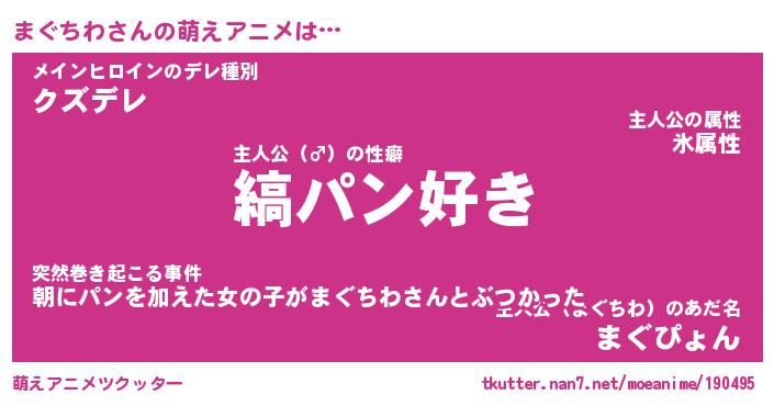 | 男性向けラノベタイトル風あだ名 | 『まぐちわの憂鬱』 |
