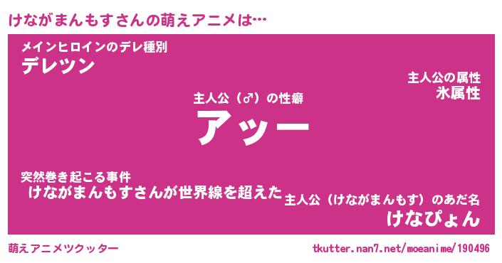 | 女子向けラノベタイトル風あだ名 | 『誰かこのけながまんもすを説明してください! ~契約から始まるウェディング~』 |