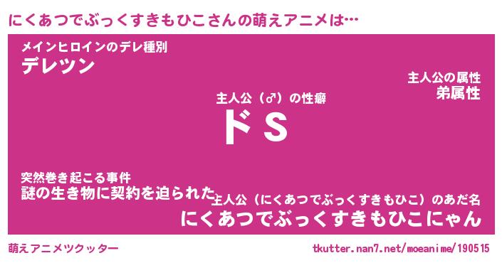 | 女子向けラノベタイトル風あだ名 | 『(仮)にくあつでぶっくすきもひこのやんごとなき事情』 |