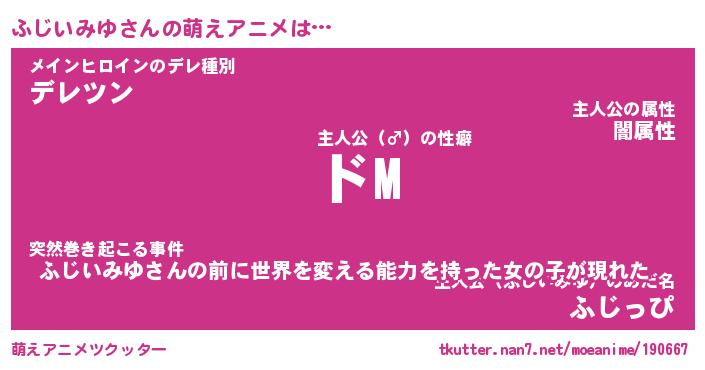 | 女子向けラノベタイトル風あだ名 | 『(仮)ふじいみゆのやんごとなき事情』 |