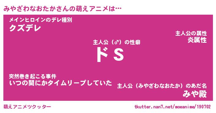 | 女子向けラノベタイトル風あだ名 | 『(仮)みやざわなおたかのやんごとなき事情』 |