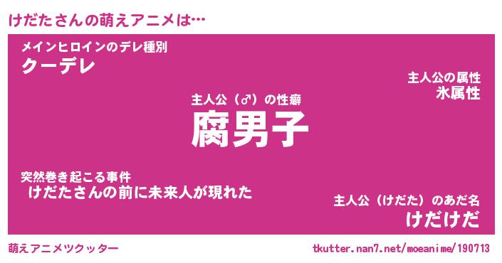 | ヘコむあだ名 | 『けだっふぃ~』『豆乳』『けだ太郎』 |