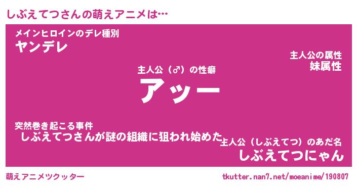 | 男性向けラノベタイトル風あだ名 | 『シブエテツアートオンライン』 |