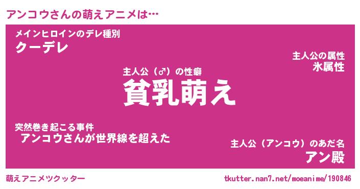 | 女子向けラノベタイトル風あだ名 | 『(仮)アンコウのやんごとなき事情』 |