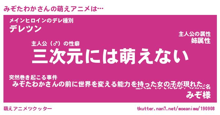 | 男性向けラノベタイトル風あだ名 | 『ミゾタワカアートオンライン』 |