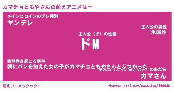 | 男性向けラノベタイトル風あだ名 | 『カマチョともやの憂鬱』 |