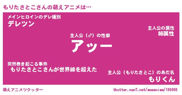| 男性向けラノベタイトル風あだ名 | 『モリタサトコアートオンライン』 |