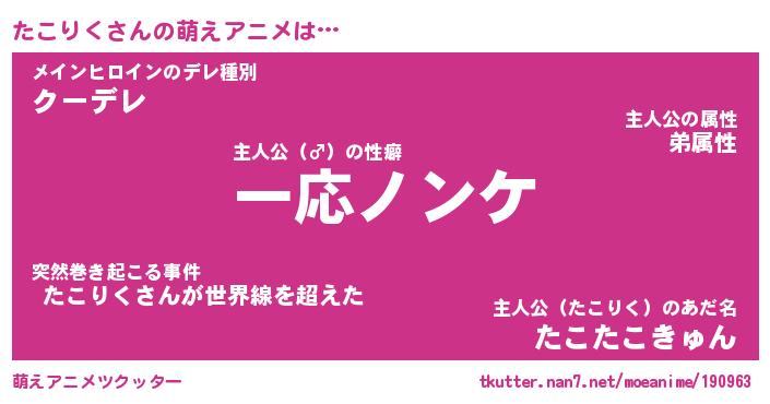 | 男性向けラノベタイトル風あだ名 | 『タコリクアートオンライン』 |