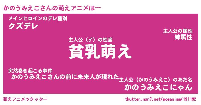 | 女子向けラノベタイトル風あだ名 | 『(仮)かのうみえこのやんごとなき事情』 |