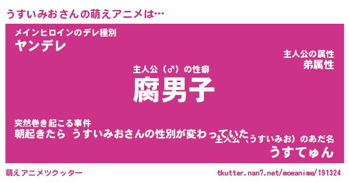 | 男性向けラノベタイトル風あだ名 | 『ウスイミオアートオンライン』 |
