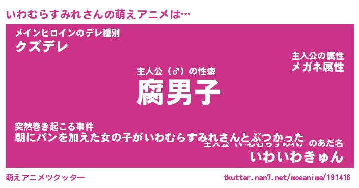 | ヘコむあだ名 | 『いわもー』『酢こんぶ』『いわを』 |
