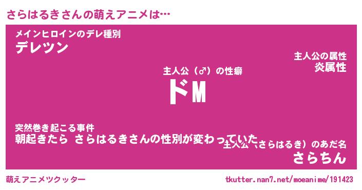 | 男性向けラノベタイトル風あだ名 | 『さらはるきの憂鬱』 |