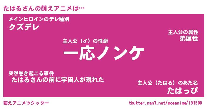 | 男性向けラノベタイトル風あだ名 | 『タハルアートオンライン』 |