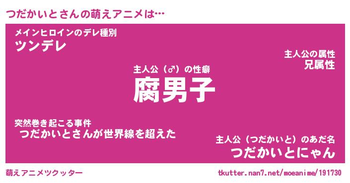 | 肩書あだ名 | 『つだかいと御曹司』『つだかいと班長』 |