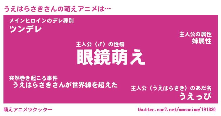 | 男性向けラノベタイトル風あだ名 | 『うえはらさきの憂鬱』 |