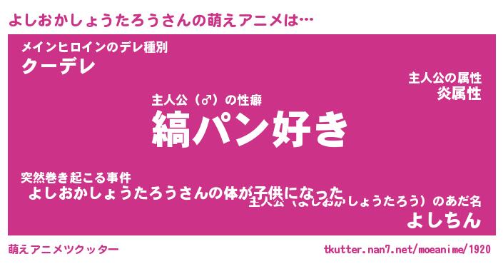 | 男性向けラノベタイトル風あだ名 | 『よしおかしょうたろうの憂鬱』 |